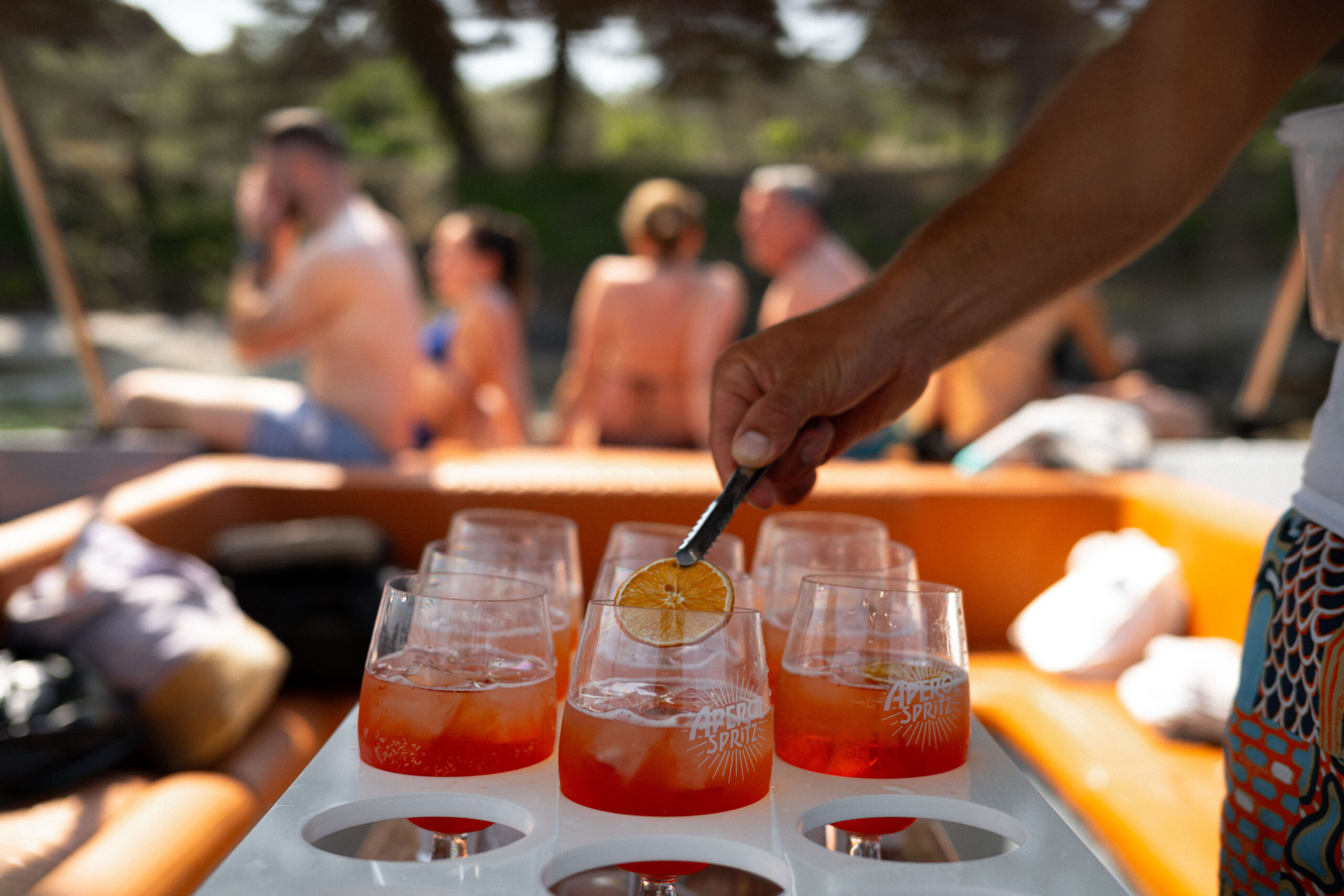 Want to take it up a notch? For just 50€ extra, you can upgrade to our Aperol Spritz package – ideal for soaking up the sun with a refreshing drink in hand.